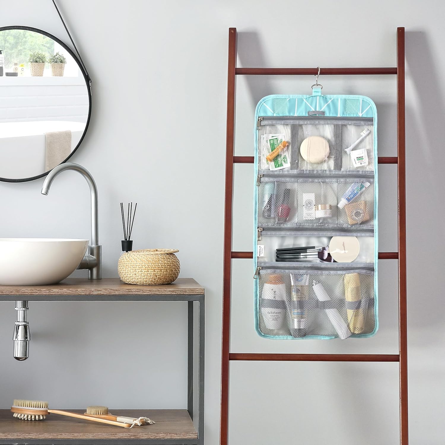 - HANGS FOR EASY ACCESS: Built-in hook lets you hang the bag anywhere, perfect for hotel bathrooms or cruise cabins. Unzips to reveal 4 spacious compartments and a front zipper pocket, keeping toiletries, skincare, and makeup organized and within reach.