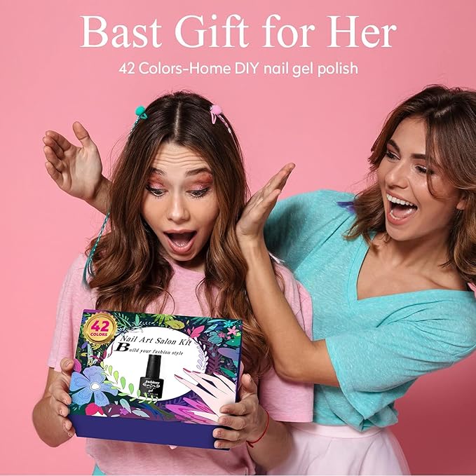 JEWHITENY 45 PCS Gel Nail Kit with 42 Colors Nail Polish Set Green Blue Red Pink Collection Gifts for Women