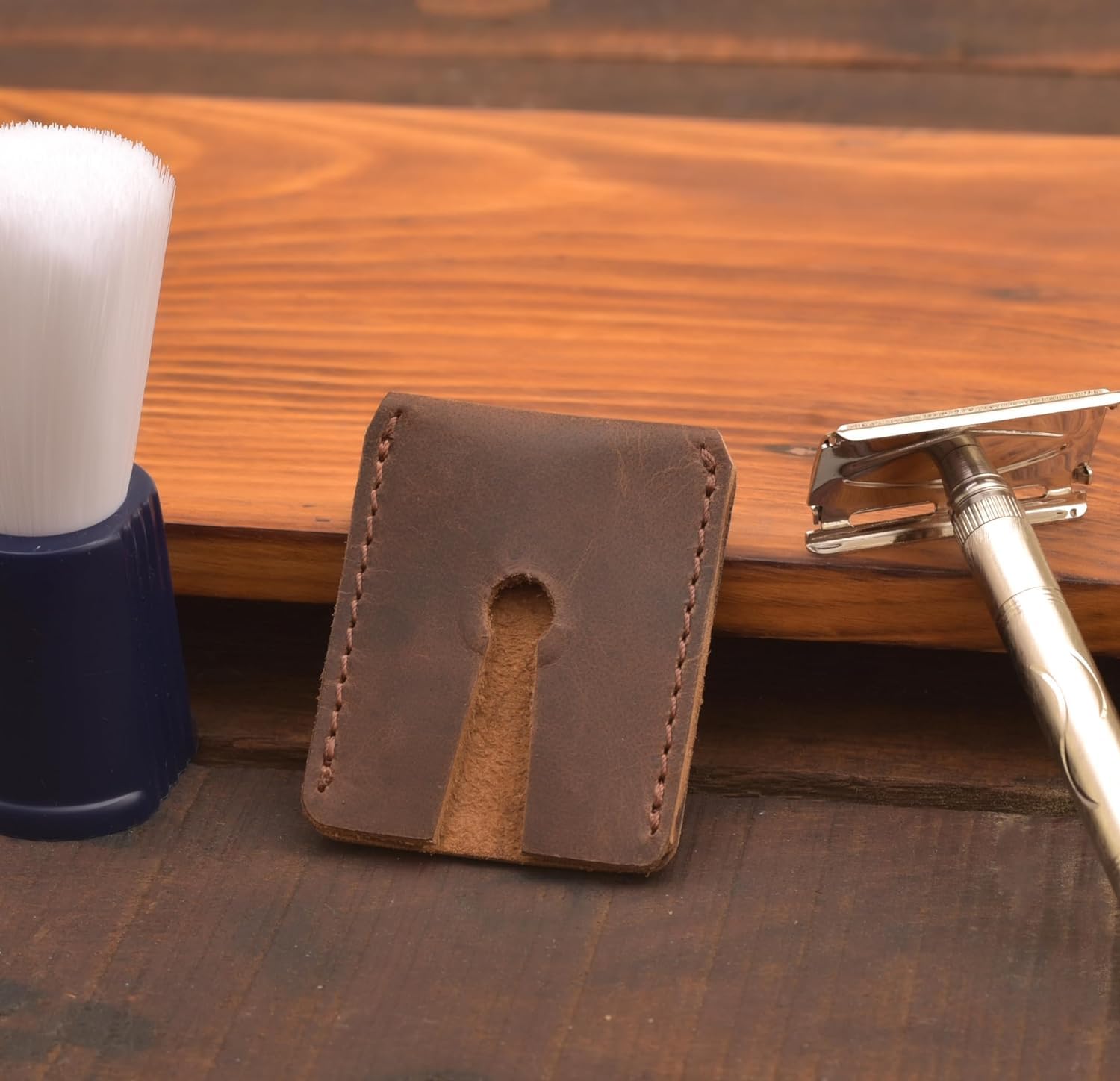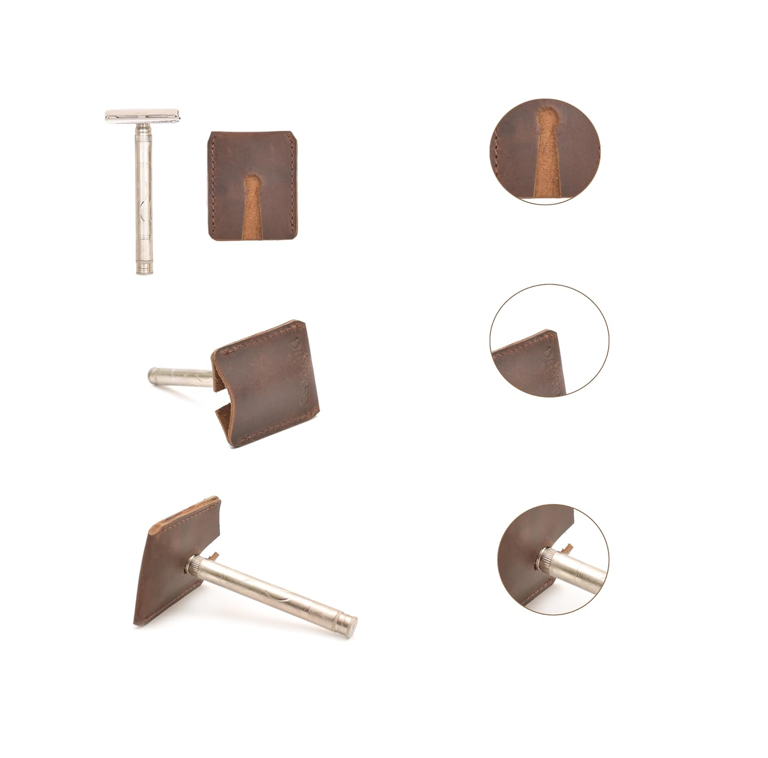 - Secure Closure: After shaving, simply insert your razor into the case and slip the hole over the brass metal rivet to keep it firmly in place, avoiding any accidental contact with the blade.