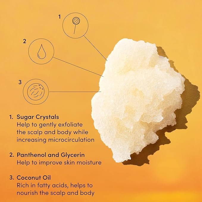 - Exfoliating Scalp & Body Sugar Scrub - Made with a rich, sudsy lather and floral scents of Dragonfruit, Orange Blossom, Tuberose and Musk, this exfoliating scrub gently removes product buildup from your scalp and body while softening and balancing your skin's moisture level.