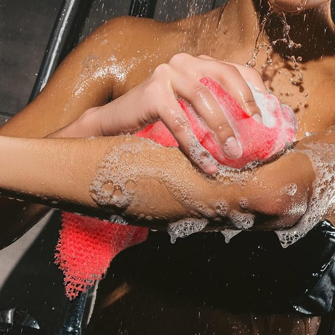 - 【More efficient cleaning】The exfoliating body net is rougher than a ordinary bathing cloth, but soft enough for daily body cleansing.easy for removing dead skin, dirt, oil, and eliminating impurities, unclogging pores, suitable for women and men of most ages to use