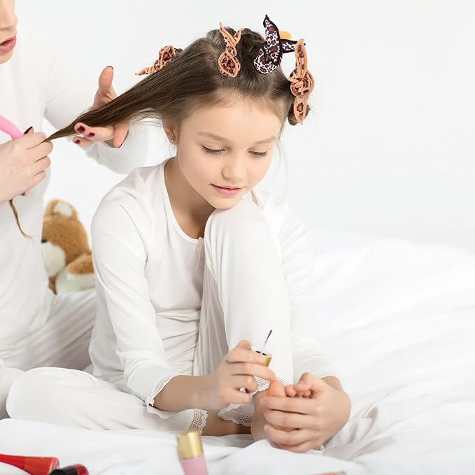 Bememo 40 Pieces Soft Curlers Hair Rollers Pillow Rollers for Hair Satin Sponge Curlers to Sleep in Overnight Heatless No Heat for Long Short Foam Rag Large Styling Tools(Leopard)
