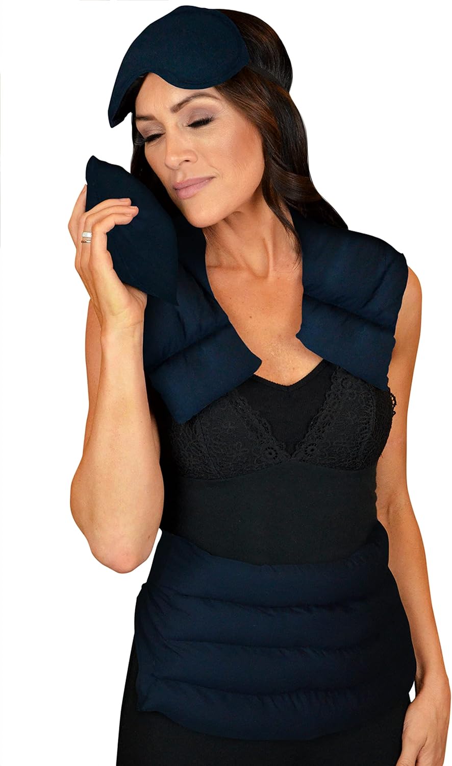 - AT HOME SERENITY: The full 4-piece set includes a wrap for the chest, neck, and shoulders, a belted lumbar wrap for the hips, abdomen, and lower back, an eye mask to relieve headaches and aching eyes, and an all-purpose aromatherapy pack
