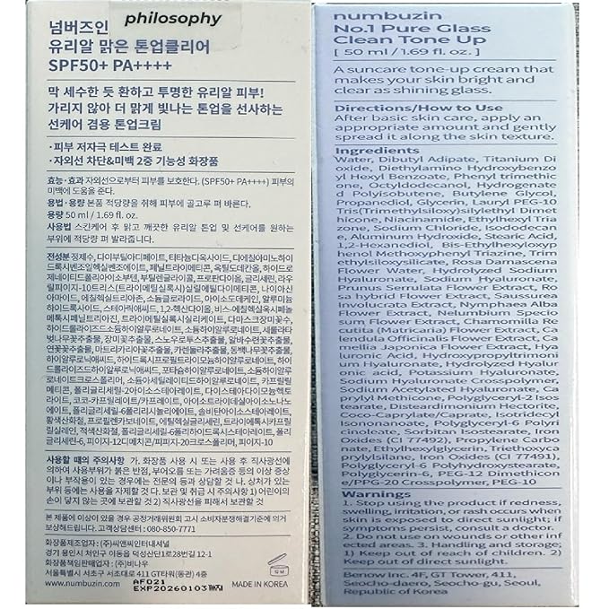 numbuzin No.1 Pure Glass Clean Tone Up | Hyaluronic Acid, Glossy Finish, Tinted, Light Beige Color | 1.69 fl oz