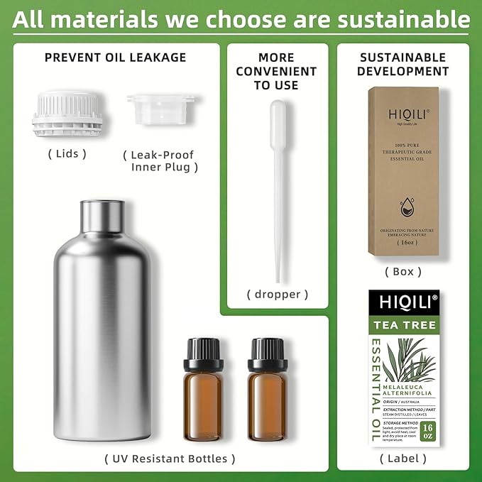 HIQILI Tea Tree Oil for Skin, Hair Restoration, Added to Shampoo, Body Wash, Foot Soak Use - 16 Fl Oz