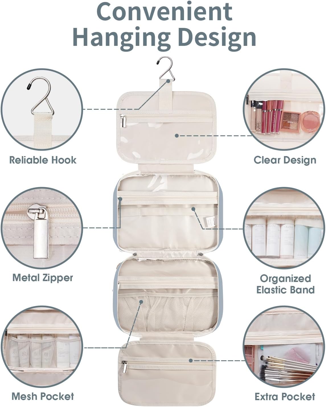 - NOT BULKY DESIGN - Large Capacity yet compact design, weighing 16 ounces. large metal hook allows hanging the toiletry case from towel rack, coat hook or wherever is available, making your toiletries and cosmetics displayed well for easy access