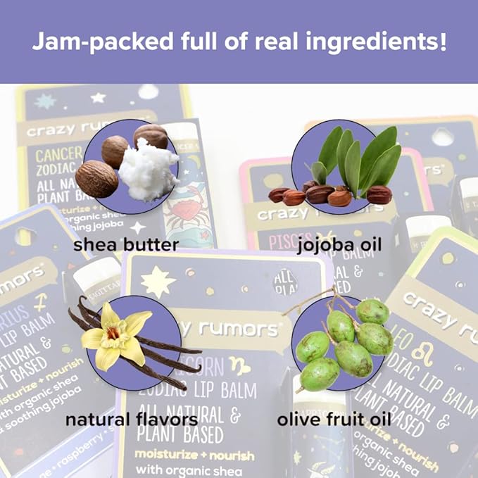 Crazy Rumors Aries Zodiac All Natural, Plant Based Lip Balm to Moisturize and Nourish your Lips - Fire Blend (Sweet Orange, Fresh Berry, Aromatic Spice)