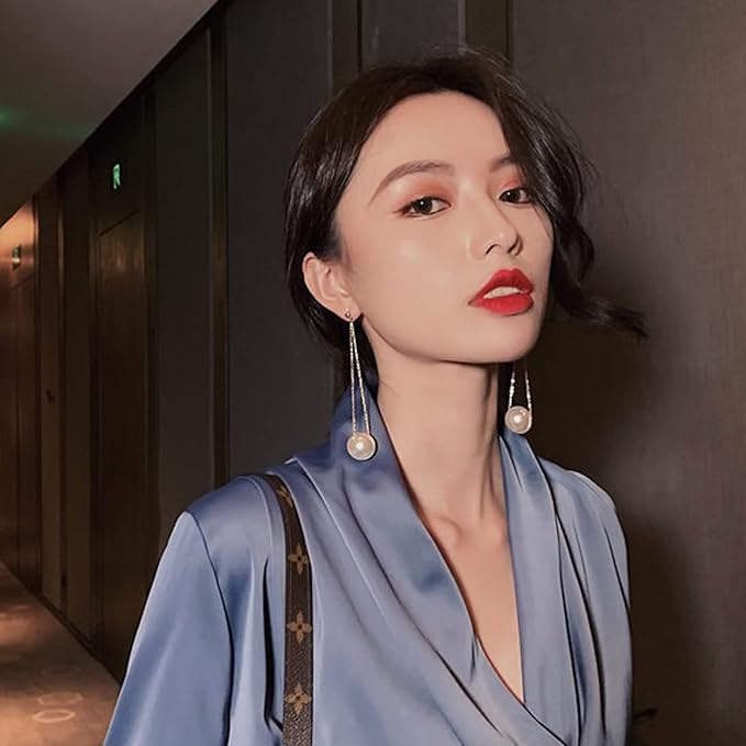- Gold long pearl earring made of high-quality alloy and imitation pearl,healthy material are hypoallergenic,won’t irritate your skin.