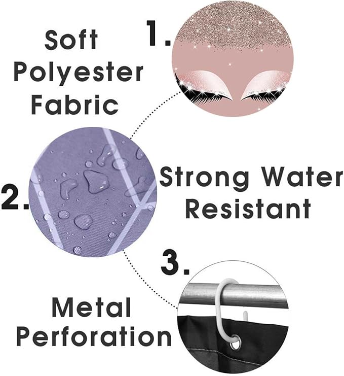 4PCS Hello Gorgeous Shower Curtain Sets with Rugs, Rose Gold Glitter Bling Glam Makeup Diamond Unicorn Eyelash Bathroom Decor, Waterproof Fabric Pink Shower Curtain Girly Gifts for Girls Women