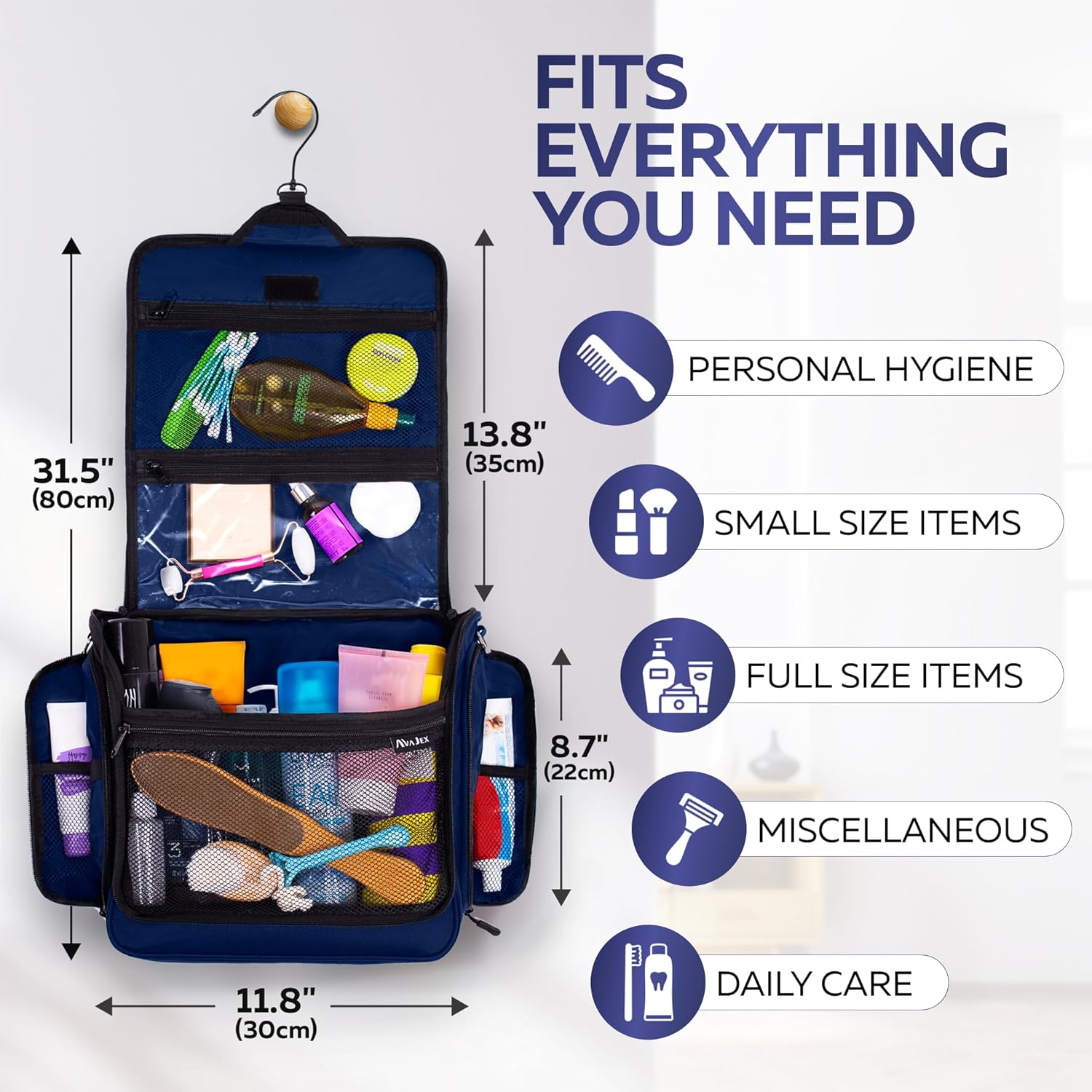 - MULTIFUNCTION: This travel organizer kit cannot only be used as a toiletry bag, but also as a cosmetic case or bathroom shower bag for your makeup tools, shampoo, soaps, shaving accessories and vacation essentials.