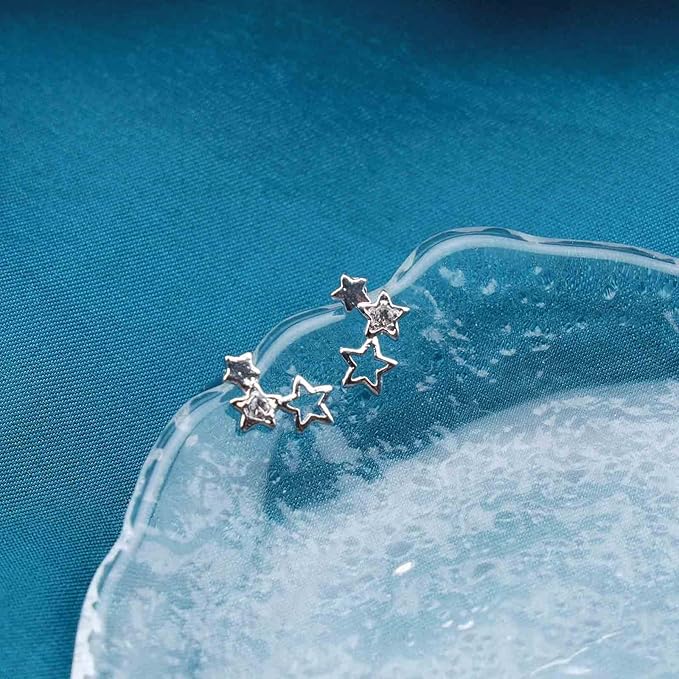 - Tiny star ear crawler earrings with real images,perfect for everyday wear,Valentine's Day, birthday,evening party etc.