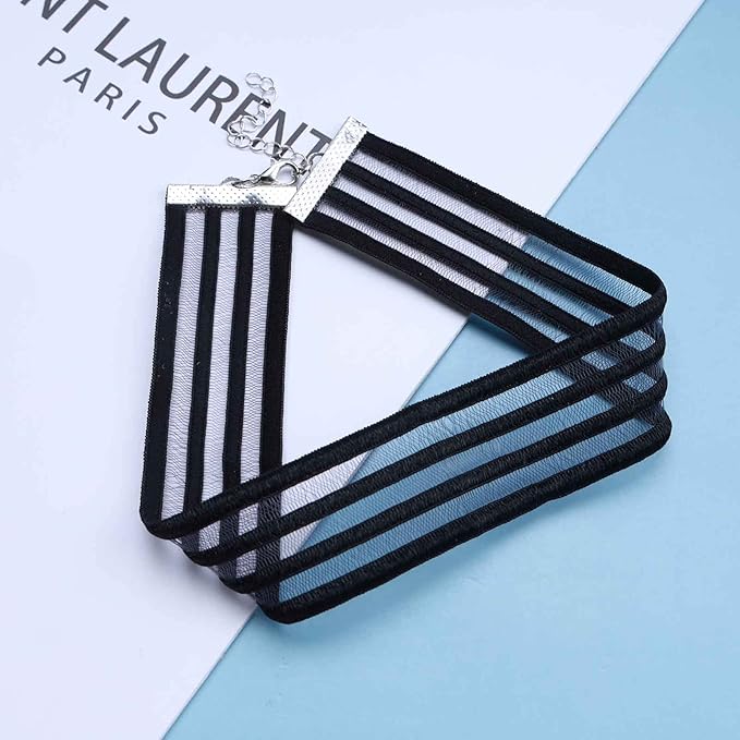 Bohemia Lace Choker Necklace Short Black Organza Necklace Gothic Wide Black Collar Necklace Punk Tattoo Choker Chain Necklace Jewelry for Women and Girls Gifts
