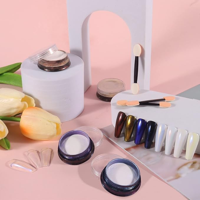 - Ultra Excellent Texture: The pearl nail powder is fine, high pigmented, and shimmery without particles feeling, so you can make your nails exquisite with an amazing aurora chrome effect. And the nail glitter is non-toxic, more durable, which does not harm your nails, using it more at ease. Make mirror effects for your nails with our excellent equality chrome powder set.