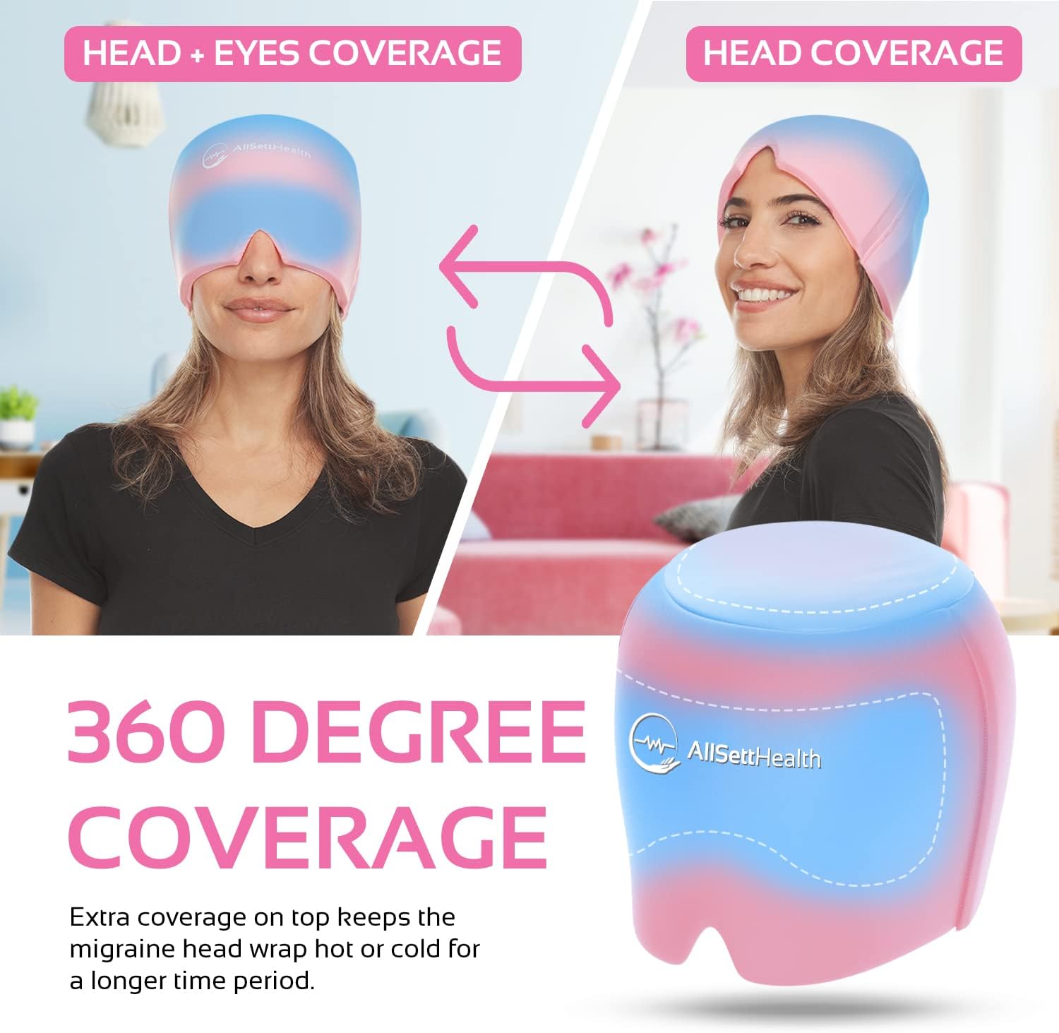 - Headache and Migraine Relief - Finally, natural drug free relief for headaches and migraines that actually works! This migraine ice head wrap offers 360 degrees of coverage to completely envelop your head in an icy cocoon of coolness and compression.