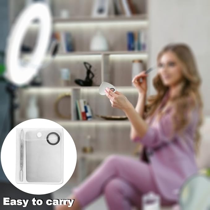 - 【Easy to Use】Each stainless steel foundation palette designed with a hole on the edge, covered with a black rubber ring, convenient and comfortable for you to hold.