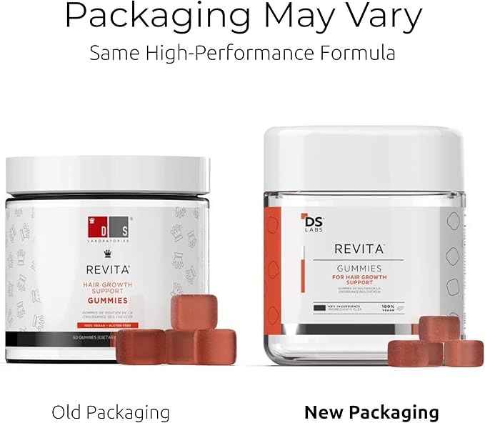 DS Labs Revita Hair Vitamin Gummies - Thickening & Strengthening Hair Supplement with Biotin, Zinc, Iron, Magnesium, Vitamin D & Melatonin, Fuller, Healthier-Looking Hair, Vegan & Gluten-Free