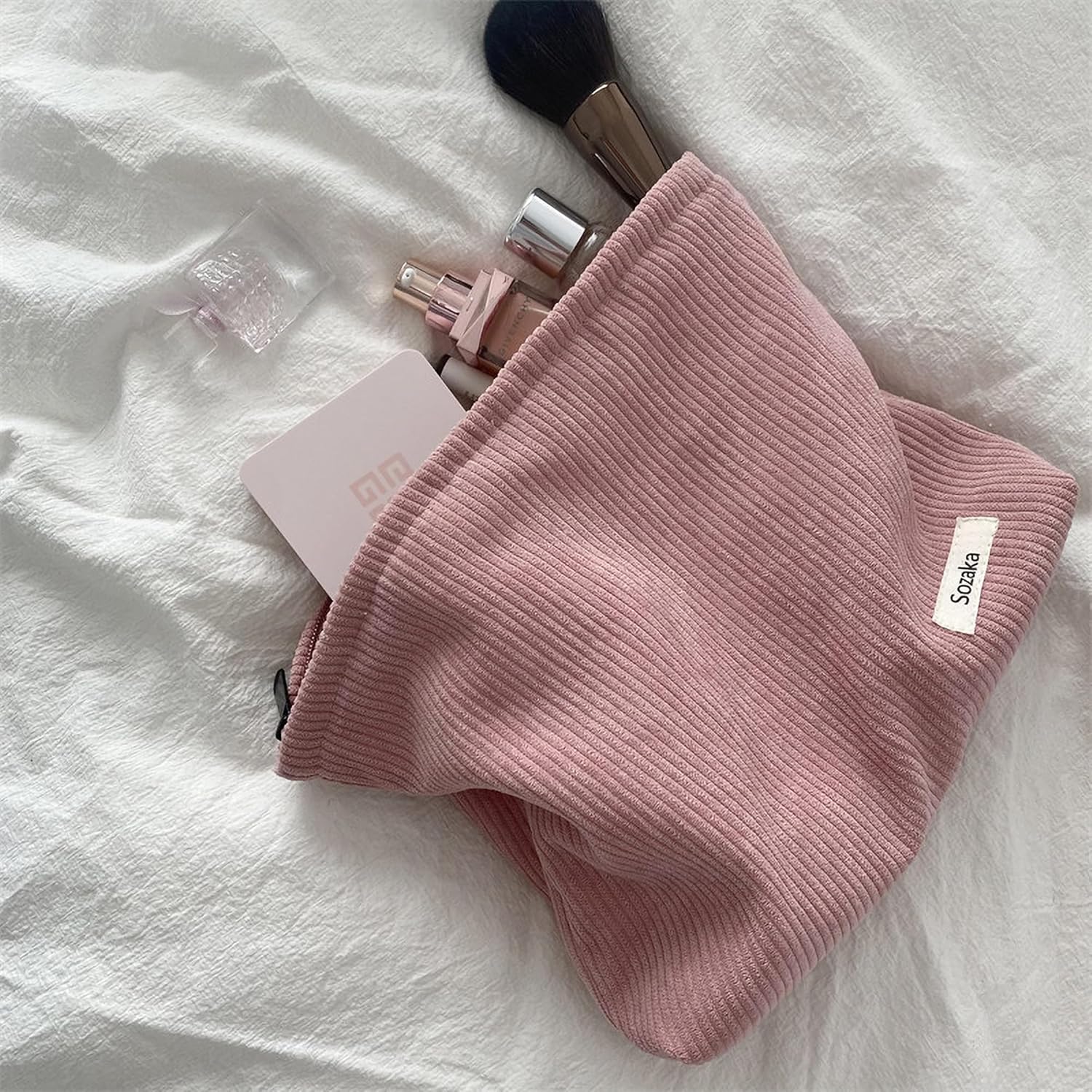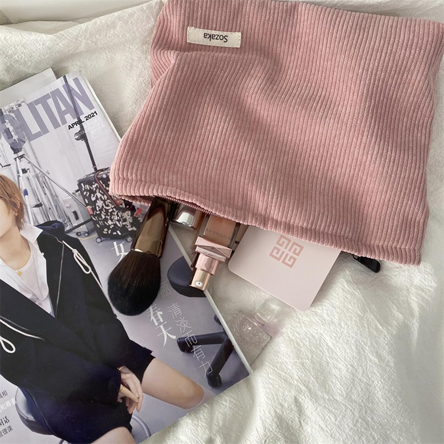 Cosmetic Bags for Women - Corduroy Cosmetic Bag Aesthetic Women Handbags Purses Smile Dots Makeup Organizer Storage Makeup Bag Girls Case Bags (Pure Pink)