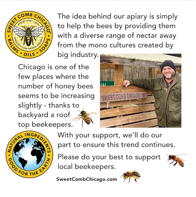 - ** URBAN APIARY: Sweet Comb Chicago was established on the North Side of Chicago in 2014. We are proud to have developed a sustainable business concept of urban agro-production. Our Apiary and gardens help pollination across the city promoting biodiversity and the sustainable development of honeybees and various pollinators.