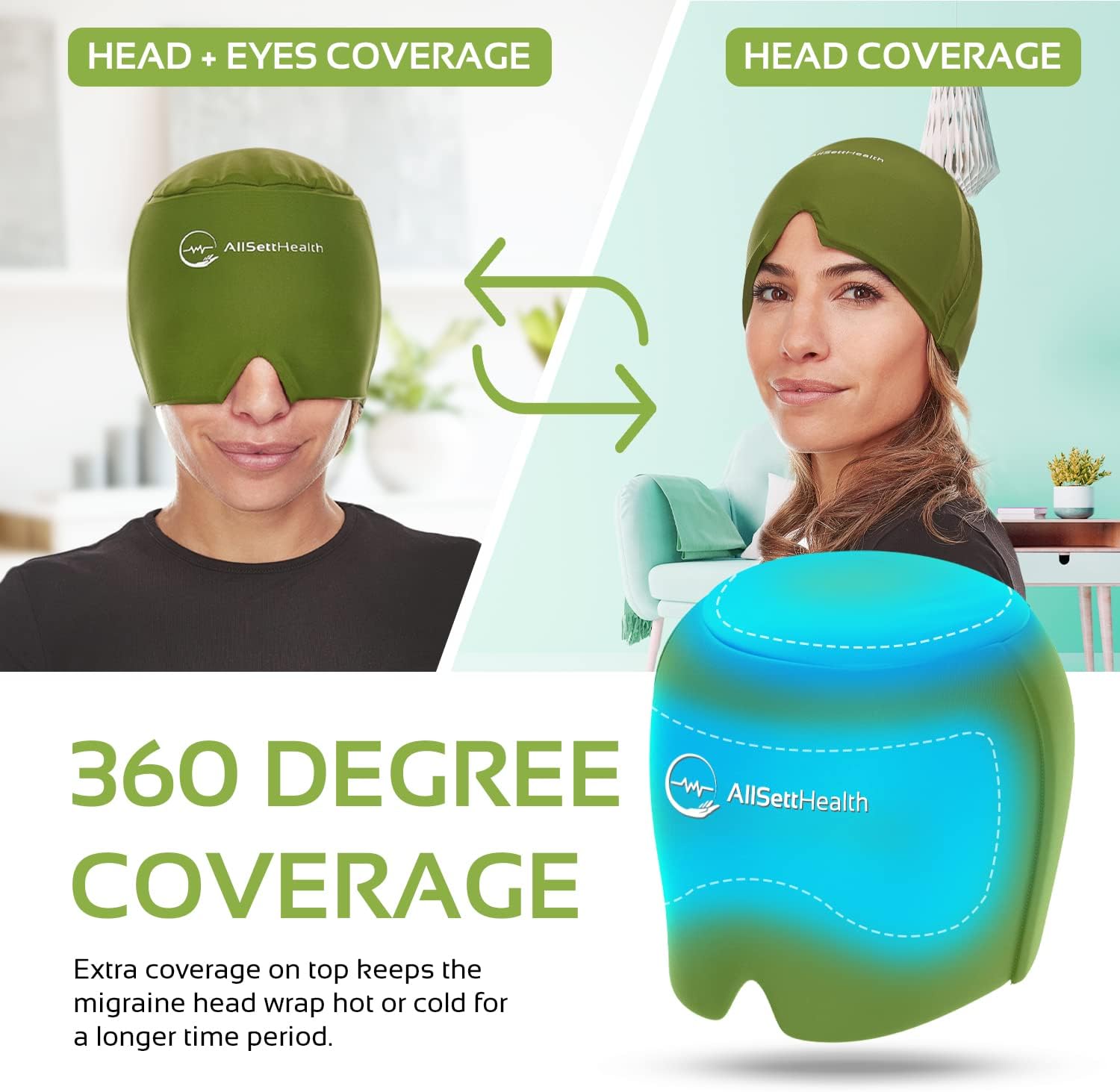 - Headache and Migraine Relief - Finally, natural drug free relief for headaches and migraines that actually works! This migraine ice head wrap offers 360 degrees of coverage to completely envelop your head in an icy cocoon of coolness and compression.