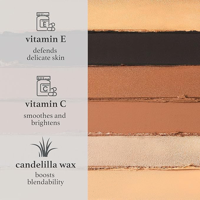 - NATURALLY EFFECTIVE INGREDIENTS VITAMIN C & E: These cream eyeshadow sticks have a hydrating, nourishing formula packed with antioxidants. Delicate, sensitive skin will love the protective and nourishing Vitamin E while brightening Vitamin C improves tone and texture. Smooth Candelilla Wax makes every shade easy to blend, naturally.