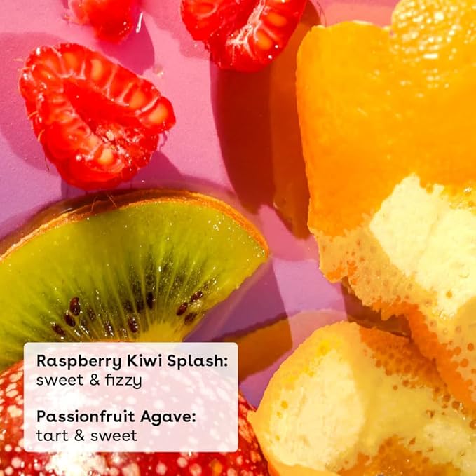 - RASPBERRY KIWI SPLASH & PASSIONFRUIT AGAVE: Our Raspberry Kiwi Splash flavor tastes like a sweet and fizzy kiwi mocktail with a splash of raspberry nectar while Passionfruit Agave tastes like pink passionfruit punch blended with sparkling tangelo