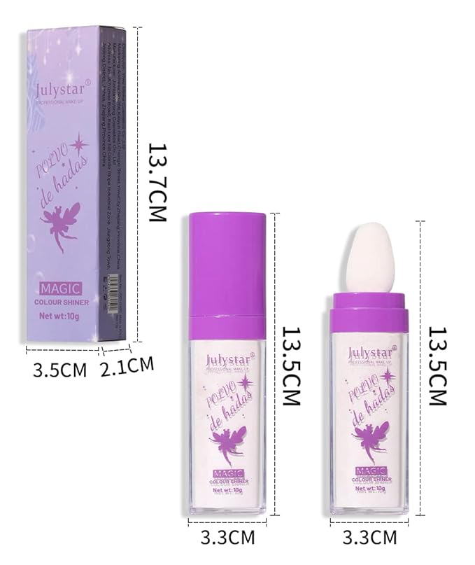 - 【Face & Body Shimmer Highlighter Powder】Polvo De Hadas, fairy shimmer highlighter powder & blush stick duo, Easy easy coloring, sublime shimmer. The highlighter stick with luminous ingredients can create an ultra-shimmer makeup effect and leave skin sun-kissed and luxuriously soft. The instant highlighter Sponge stick design is very convenient to use, and it is suitable for both face and body, making the body glowing and the face become more eye-catching.