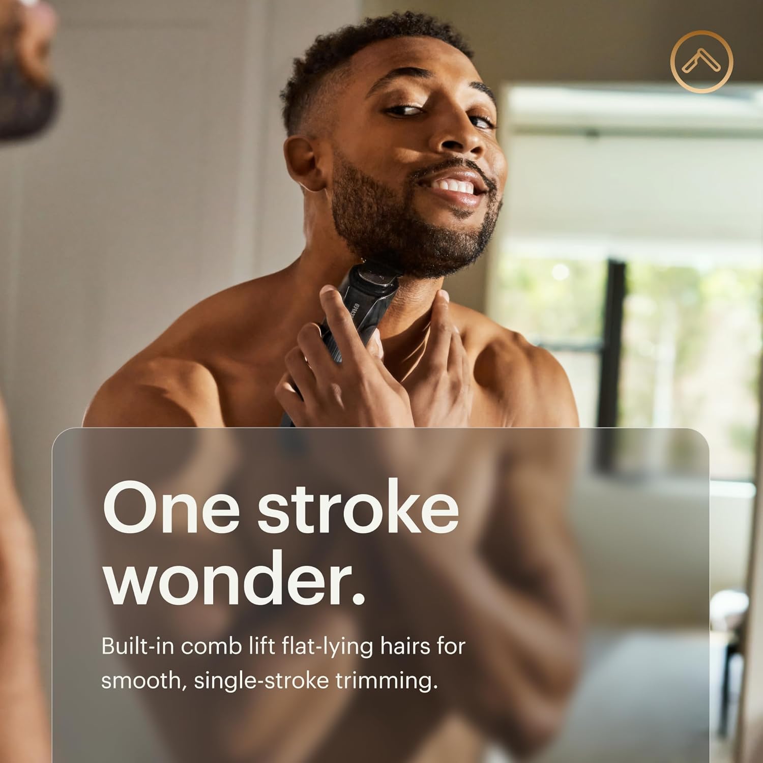- ONE STROKE WONDER: our men's trimmer was designed with a unique cutting angle to have its built-in comb lift flat-lying hairs for smooth, single-stroke trimming.