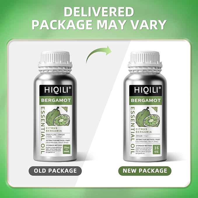 HIQILI Bergamot Essential Oil for Diffuser, Skin, Hair, DIY, 100% Pure & Natural - 16 Fl Oz (500 mL)