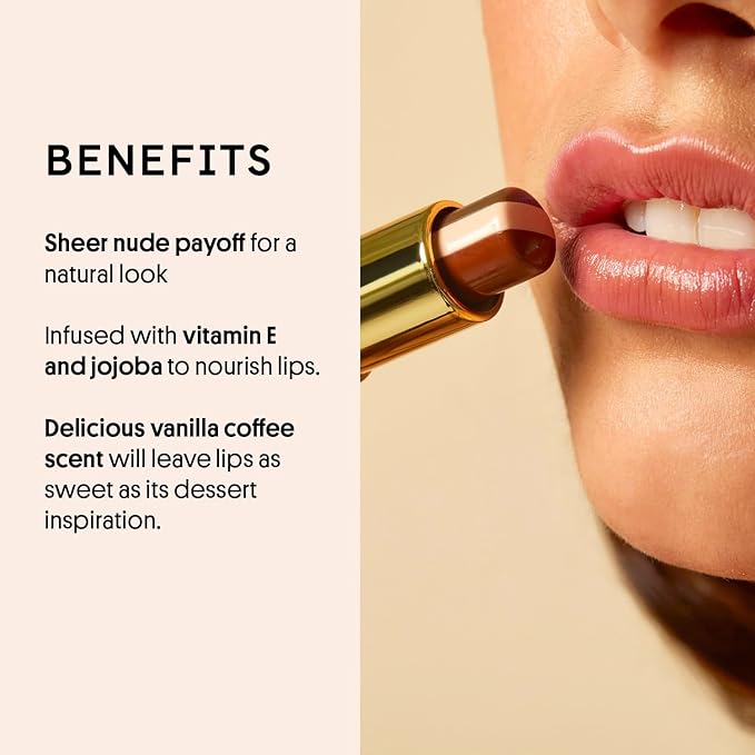 - VANILLA COFFEE: Indulge your pout in the mouth watering aroma of a freshly brewed affogato; every swipe releases creamy espresso and sweet vanilla notes while drenching lips in hydrating, sheer-nude goodness.