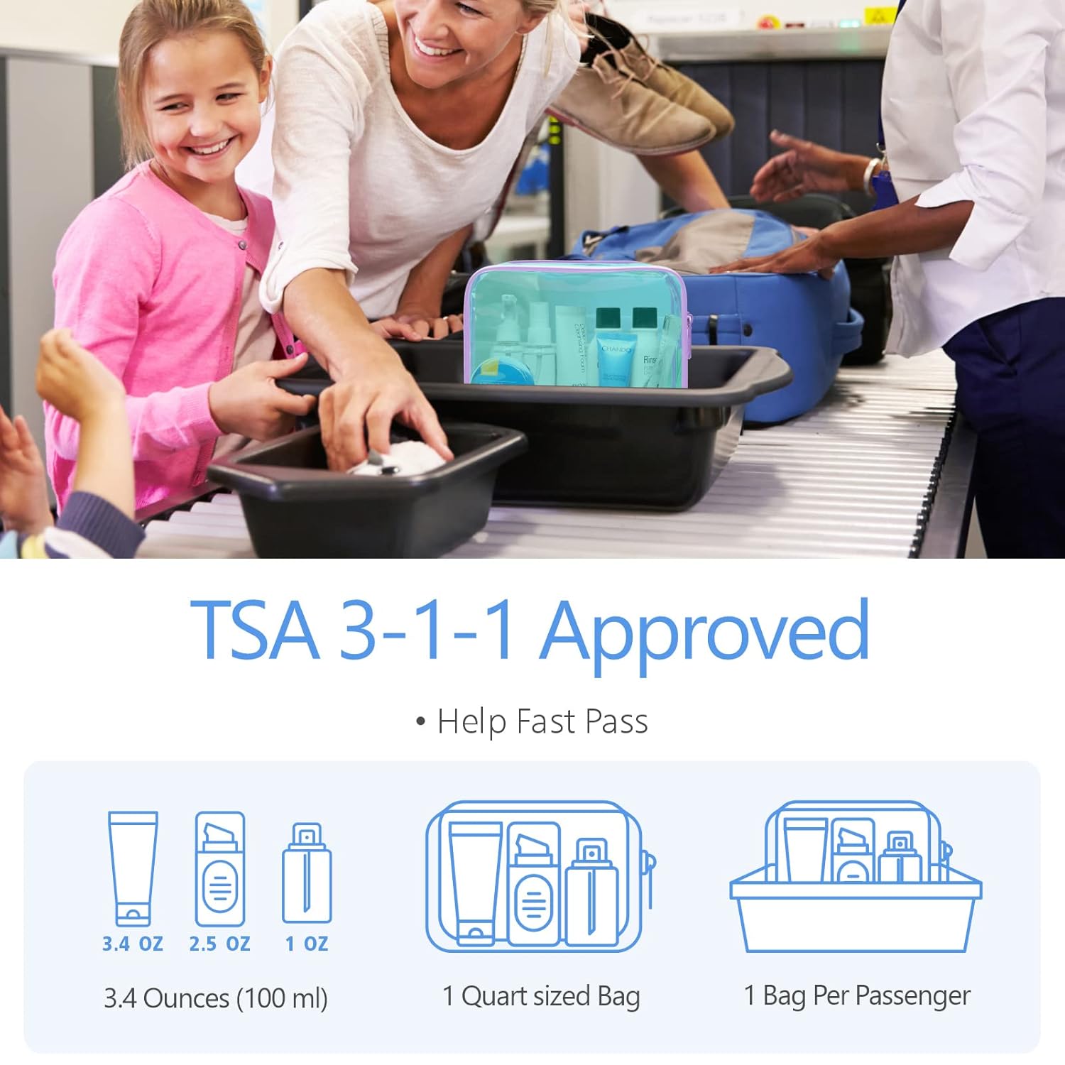 - TSA Approved: The 7.5 x 5.5 x 2.2 inch clear travel toiletry bag strictly follows TSA 3-1-1 liquids rule for carry-on bag of all airlines, so you can easily and quickly pass through security screening with it in the airport