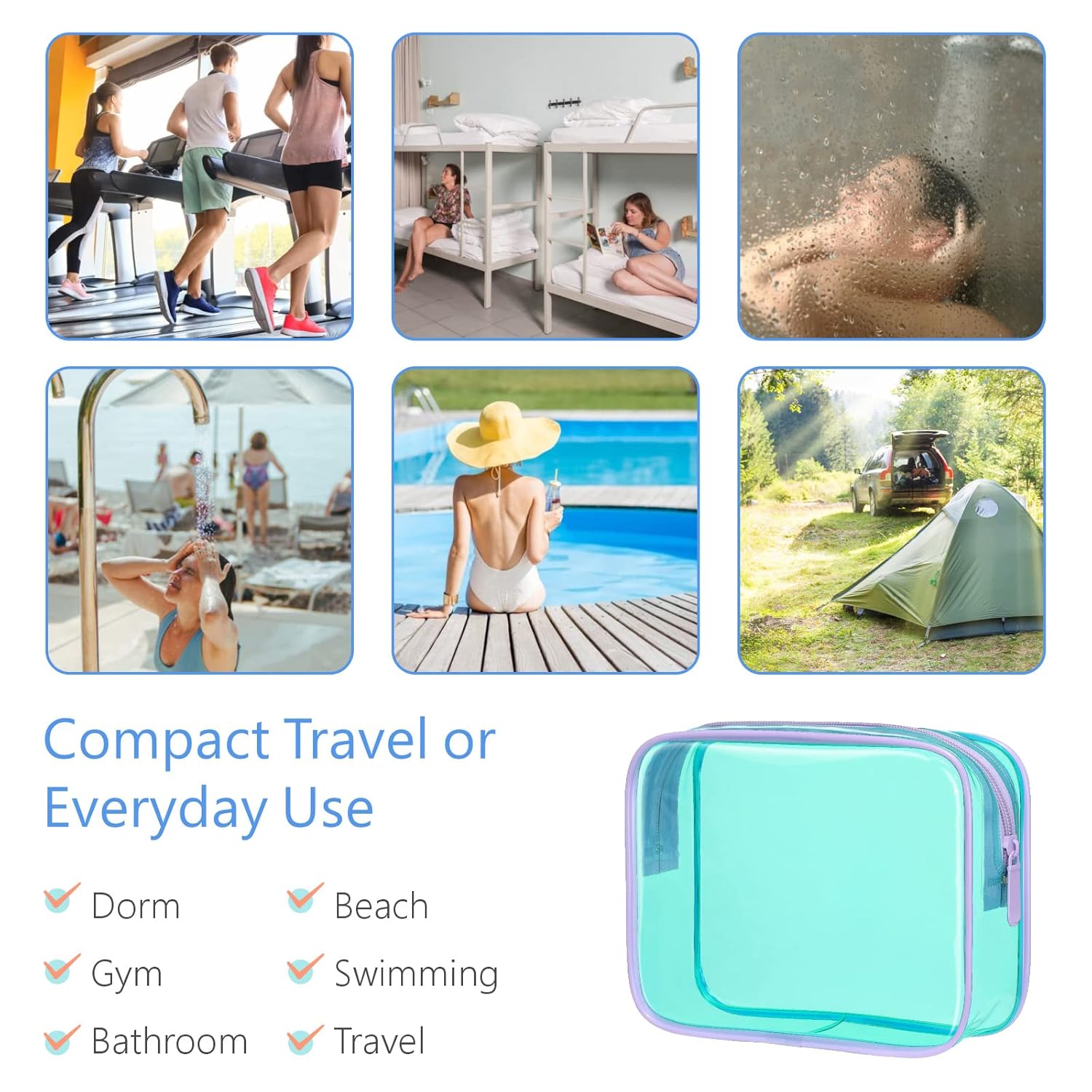 - Easy to Access & Trendy Colors: The transparent material helps you quickly find what you need without having to dig through a messy bag. Various colors help distinguish your clear makeup bags from other travel accessories and separate items in your suitcase. This travel toiletry bag is suitable for age 12 or above