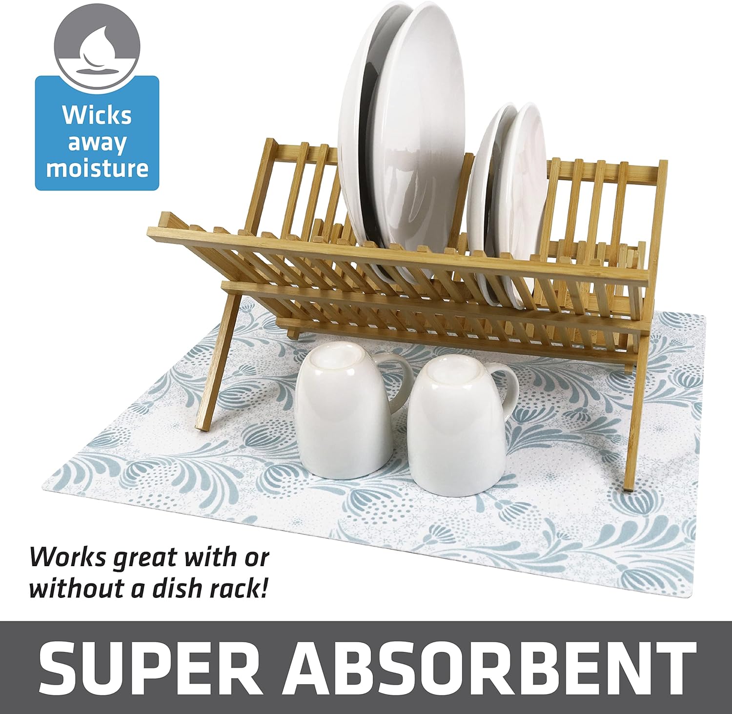 Drymate XL Dish Drying Mat, Oversized (19”x24”), Low-Profile, Super Absorbent, Quick Dry Fabric, Waterproof & Slip-Resistant, for Kitchen Counter, Trimmable, Easy to Clean (USA Made)(Light Blue)