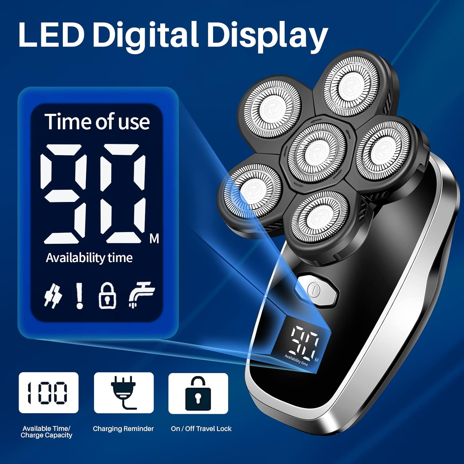 - USB Charging and LED Digital Display: This YHAYHO electric shaver is the perfect choice for on-the-go beard trimming. Its convenient USB charging feature allows you to easily charge it anytime, anywhere. And it only takes two hours to charge and provides up to 90 minutes of usage and allows it to be used multiple times on one charge. Additionally, you can monitor the battery status using its LED digital display, so you always know when it's time to recharge.