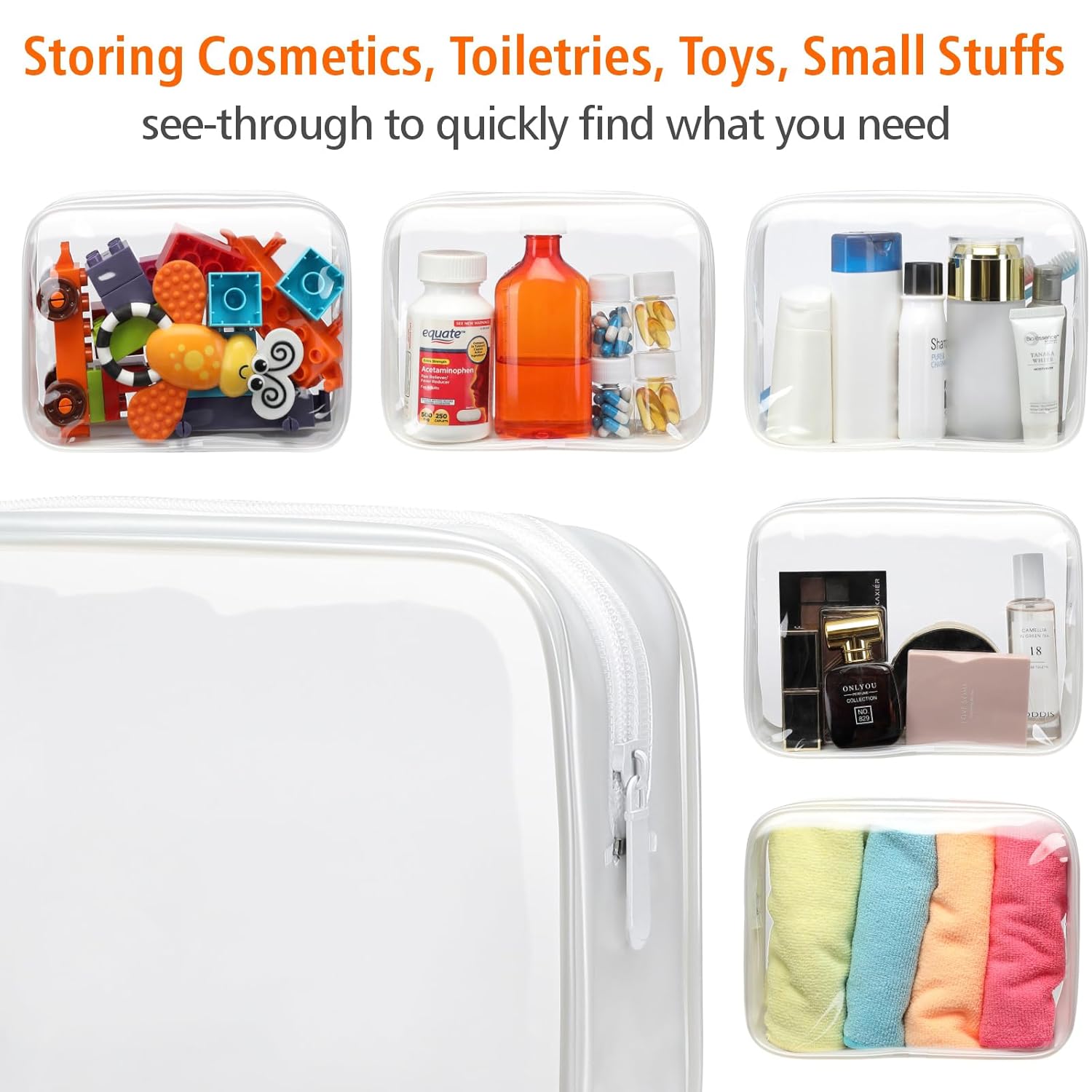- High-Quality, Durable: The clear makeup bags keep the shape with reinforced boning. Smooth metal zipper for longevity, ensuring a secure seal that complies with TSA regulations for sealed bags. Wide opening for easy access. A net weight of only 0.7 lbs per bag, light and feelless