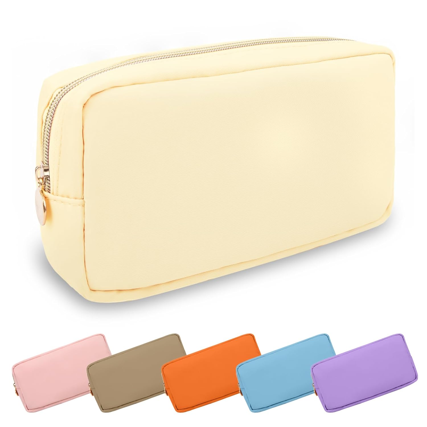 Small Makeup Bag Pouch for Purse, Nylon Travel Toiletry Storage Bag Cute Preppy Cosmetic Bag for Women Girls, Waterproof Makeup Organizer Bag Pouch Skincare Bag Purse with Zipper (Small-Sand)