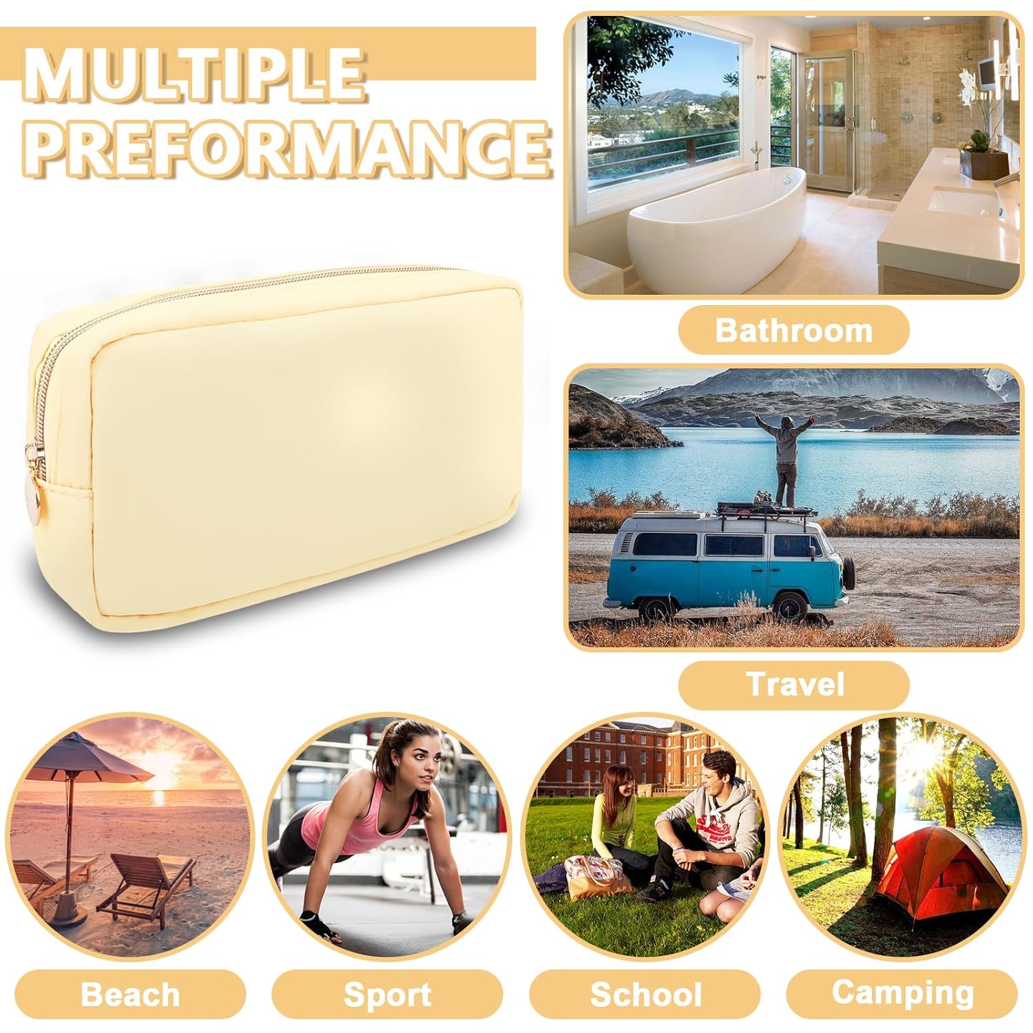 - 【Multi-purpose】The preppy makeup bag makes it easy to pack and carry cosmetics, jewelry, sanitary napkins, brushes, pencils, small electronic accessories, toiletries, medications, tools or other travel essentials. It's a great bag for school, travel, parties, camping, beach, gym, etc.