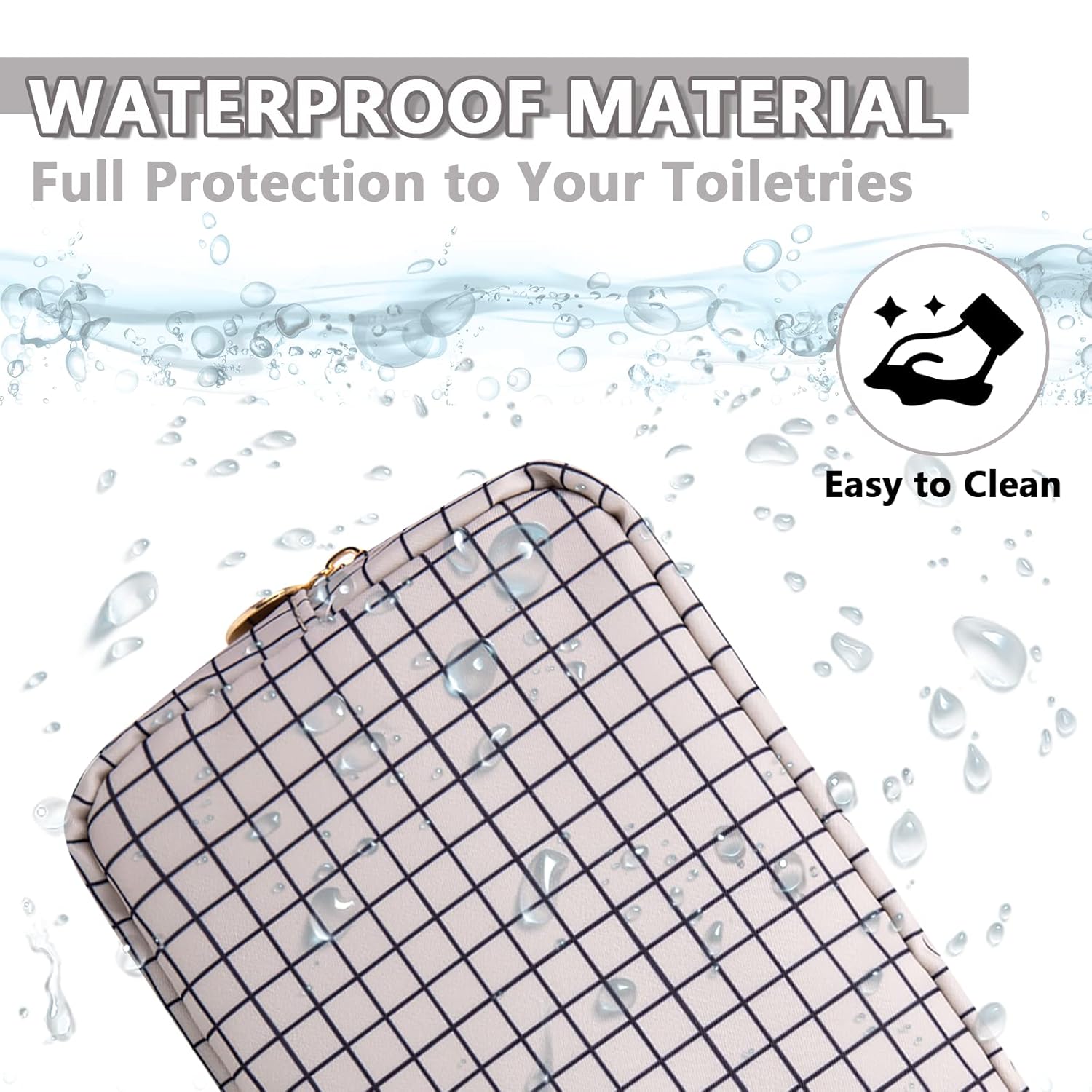 - 【Multiple Options】The waterproof makeup bag has four sizes, Mini(4.75''*2''*5''), Small(9.5''*2''*5''), Large(11''*5''*8'') and Slim(2.75*8''*2.75''). You can choose the right size according to the items you want to store. We have four types of patterns, Pink Heart, Houndstooth, Checkerboard grid and White Heart. You can enjoy choosing the pattern you like.