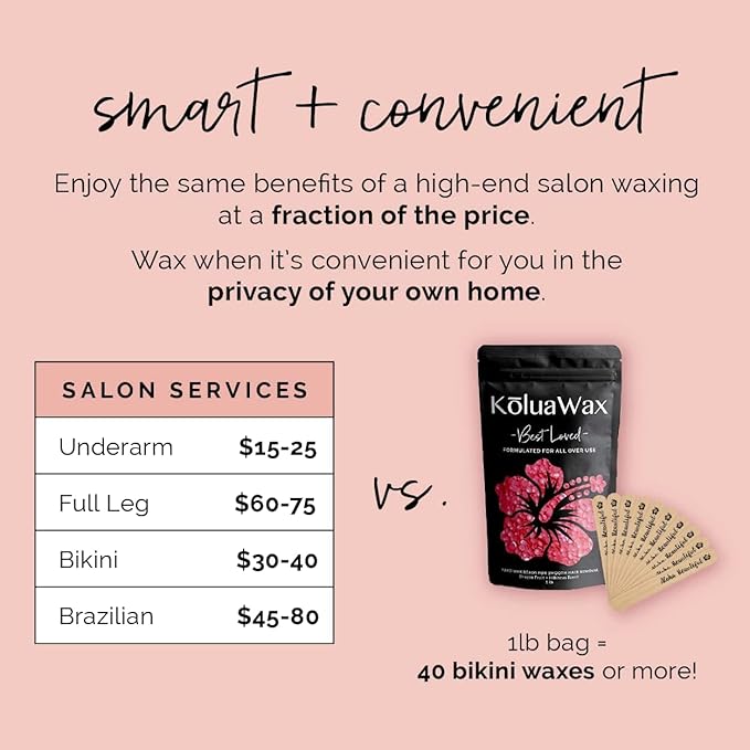 - Salons charge up to $40 for a single bikini wax or leg wax. With enough wax beads for 40+ waxes, KoluaWax is beautifully economical. We did the math and developed a hair remover for women that works in your favor.