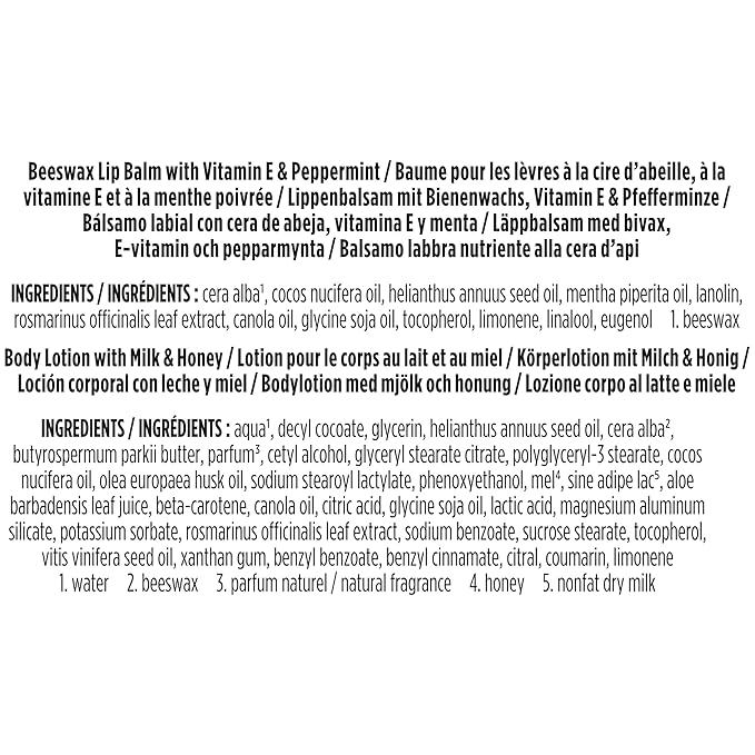 Burt's Bees Hive Favorites Beeswax Holiday Gift Set, Beeswax Lip Balm and Travel Size Body Lotion with Milk and Honey
