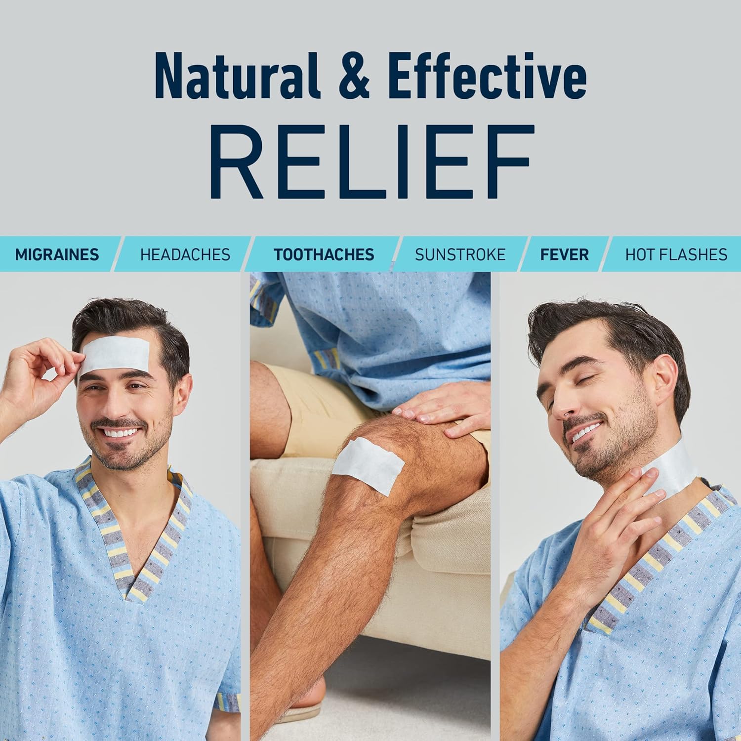 - IMMEDIATE COOLING RELIEF ON CONTACT - These cooling patches serves like an instant ice pack that provides noticeable relief for migraines, headaches, toothaches, overheating/sunstroke, fever, sprains, and hot flashes. Experience immediate soothing relief the instant it touches your skin.