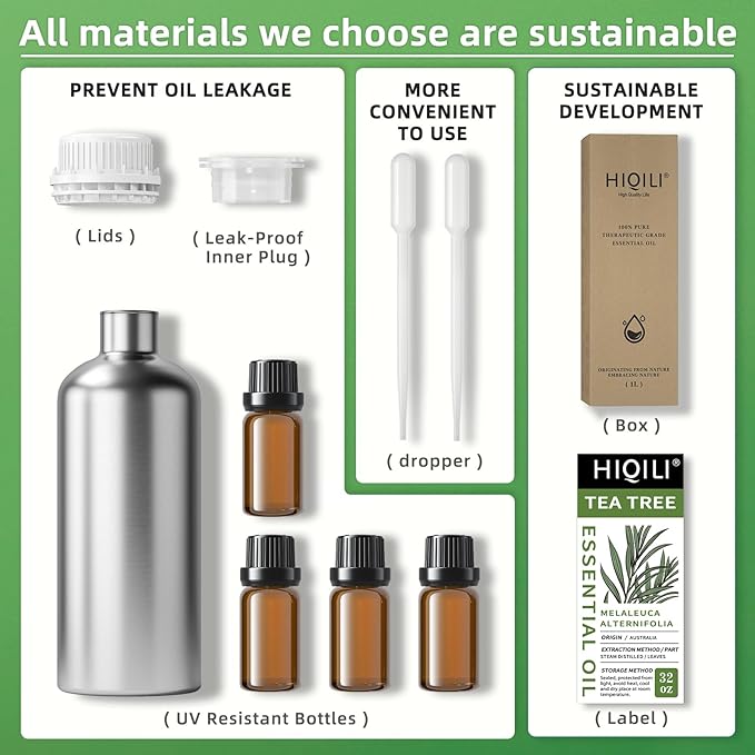 - Ingredient & Aroma: Our raw materials are sourced from Australia and extracted using the traditional steam distillation method. Tea Tree essential oil has a fresh, slightly herbaceous aroma and