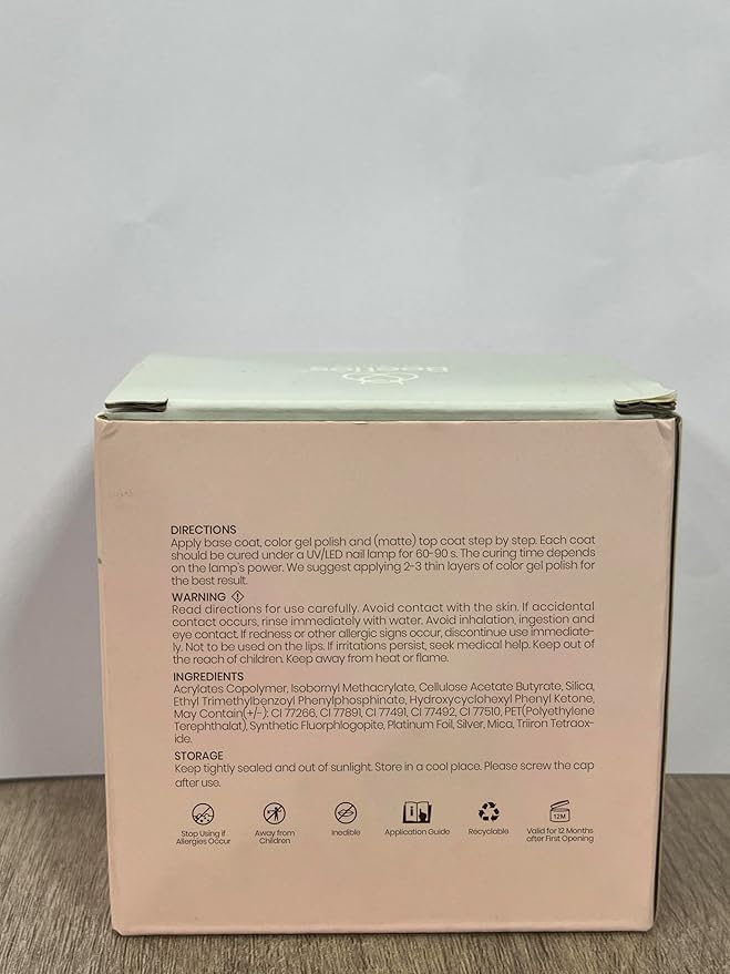 - 【Warm Tips】Please conduct a skin test before use. Read directions for use carefully. Professionally formulated and only used for nails. Avoid contact with eyes, mouth, and skin. In case of contact with them, rinse immediately with water. If there is any incident, contact the doctor immediately. Stop using the product if redness and itching develop.