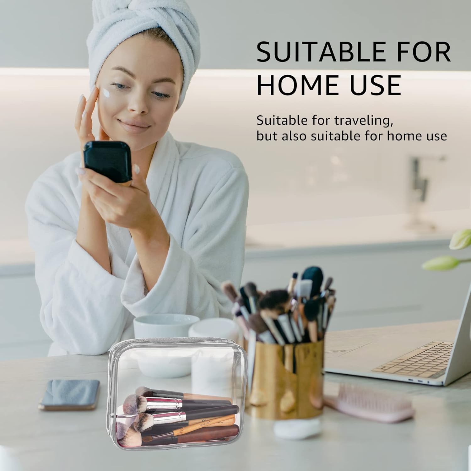 • Improved 0.6mm thickened transparent PVC material, softer and more pliable, durable and reusable; 6 PACKS 3 DIFFERENT SIZES: 1x Large clear toiletry bag (11.8" x 3.9" x 8.7"), 2x Medium clear makeup bag (9.5" x 1.9" x 7.9"), 3x Small clear cosmetic bag (7" x 1.6" x 5.5")