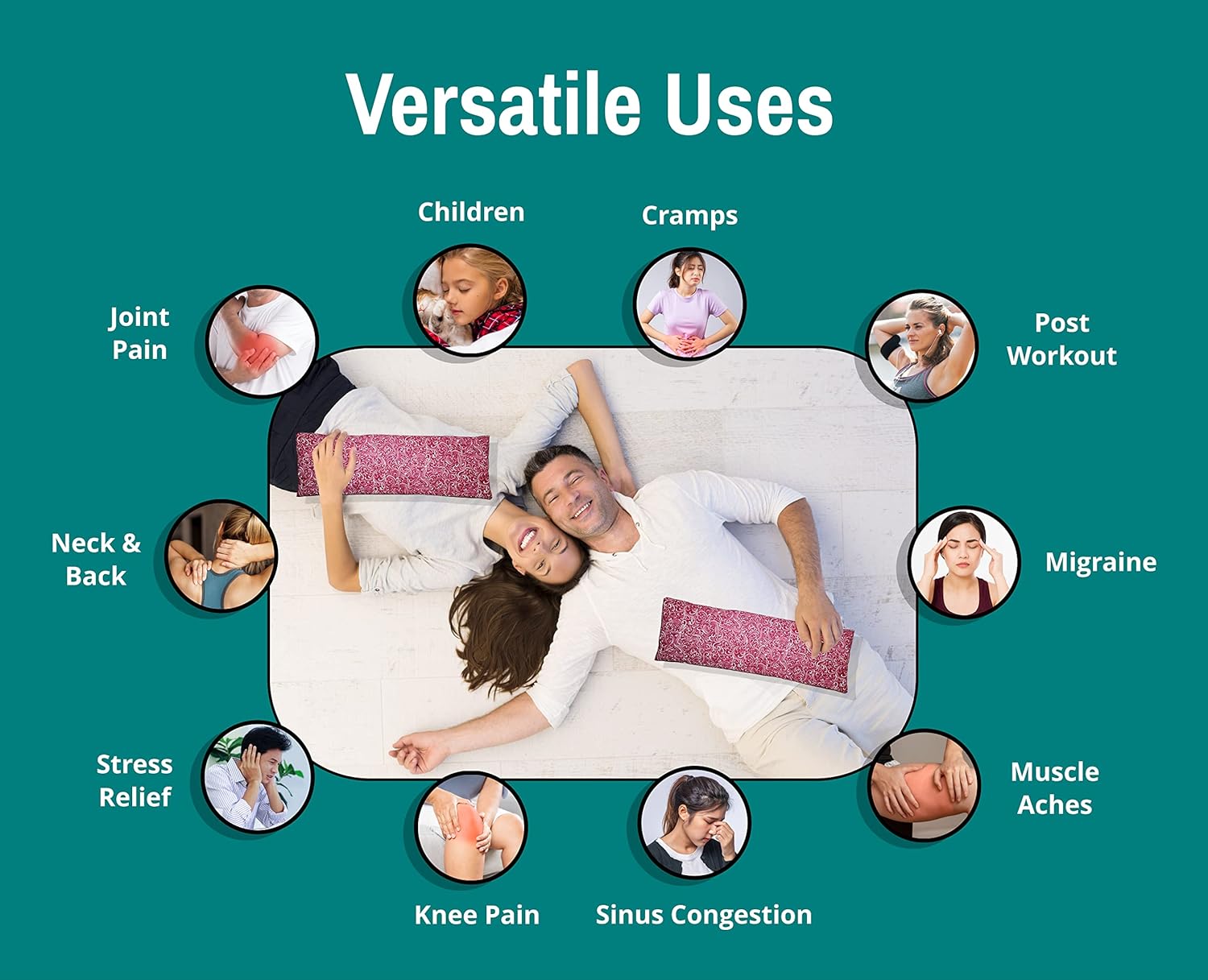 Microwavable Corn Filled Heating Pad and Cold Pack/Washable 100% Cotton Cover (Breezy - Raspberry, 5.25in W x 17.25in L)