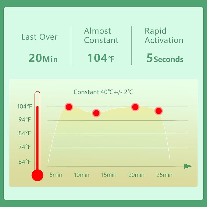 - Patented & Stable -- The eye soother masks gain patented ultra thin self-heating cell, last for about 25minutes with constant temperature of 40℃(104F), as well as gentle but dense steam. Warm and wet vapor helps better rejuvenate tired eyes, improve micro-circulation around your eyes, and promote absorption of eye creams, allowing you to enjoy face spa anytime and anywhere