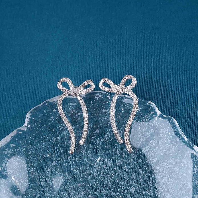 - Rhinestone bow stud earrings.Gift Occasion:The Simple Elegance and Intricate Detailing,From Casual to High Chic.Suitable for any Occasion, Such as Beaches, Event Parties, Dance Parties, Dates, .Daily Collocations,Banquet,Weddings, etc.