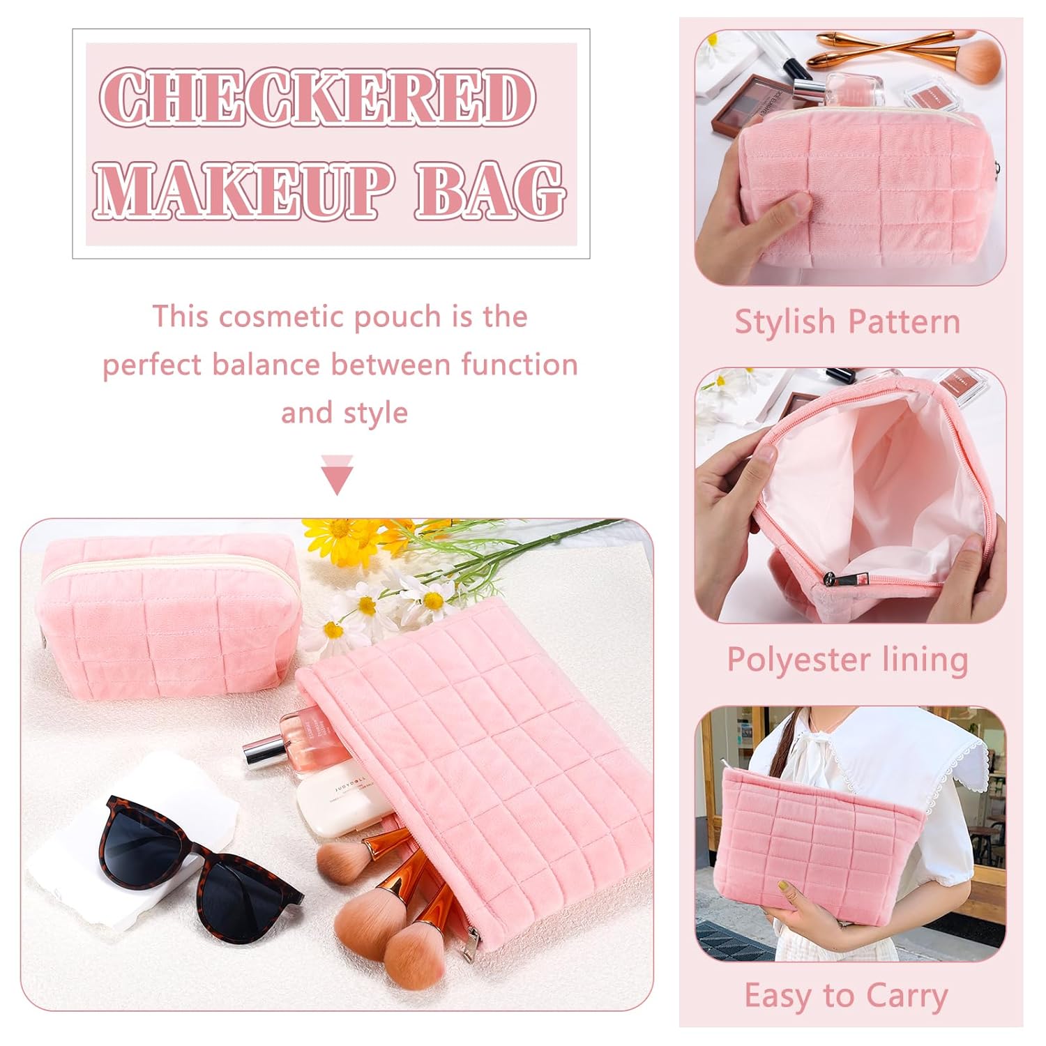 - LARGE CAPACITY AND PREMIUM MATERIAL: The cute makeup bag measure 6.7×3.9 inches and 7.7×2.5 inches, easy to carry. The checkered makeup bag is made of soft knitted fabric, easy to clean. The smaller ones can be used as pencil case or pencil pouch. This makeup travel bag can also hold small items such as makeup, skincare products, lipstick, eye shadow, eyebrow brush, etc. Makeup storage bag for women toiletries