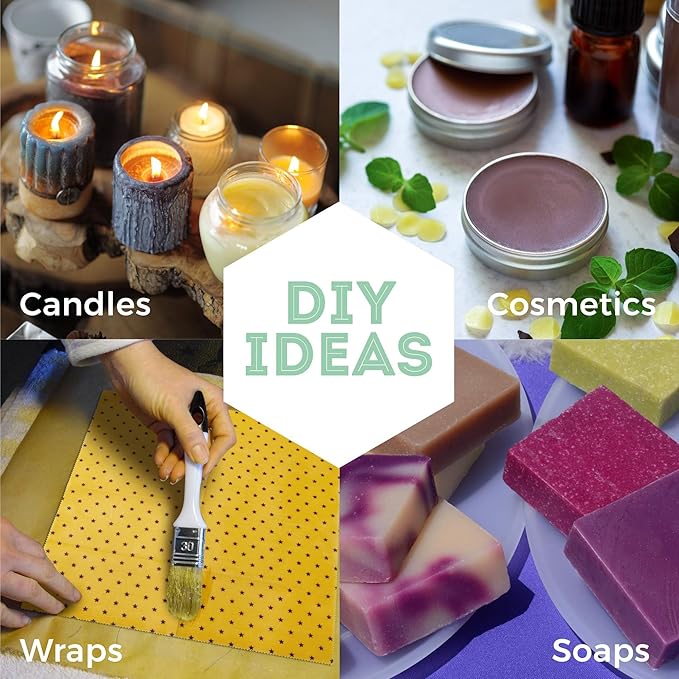 - 🐝[Versatile Usage] Beewax has a wide range of uses, including being used as a natural food preservative as food grade beeswax, and as a primary ingredient in beewax candle making due to its clean-burning properties, projects such as making body butters, lip balms, face lotions, beeswax wraps, candles, furniture polish, soap making, crayons and so much more.