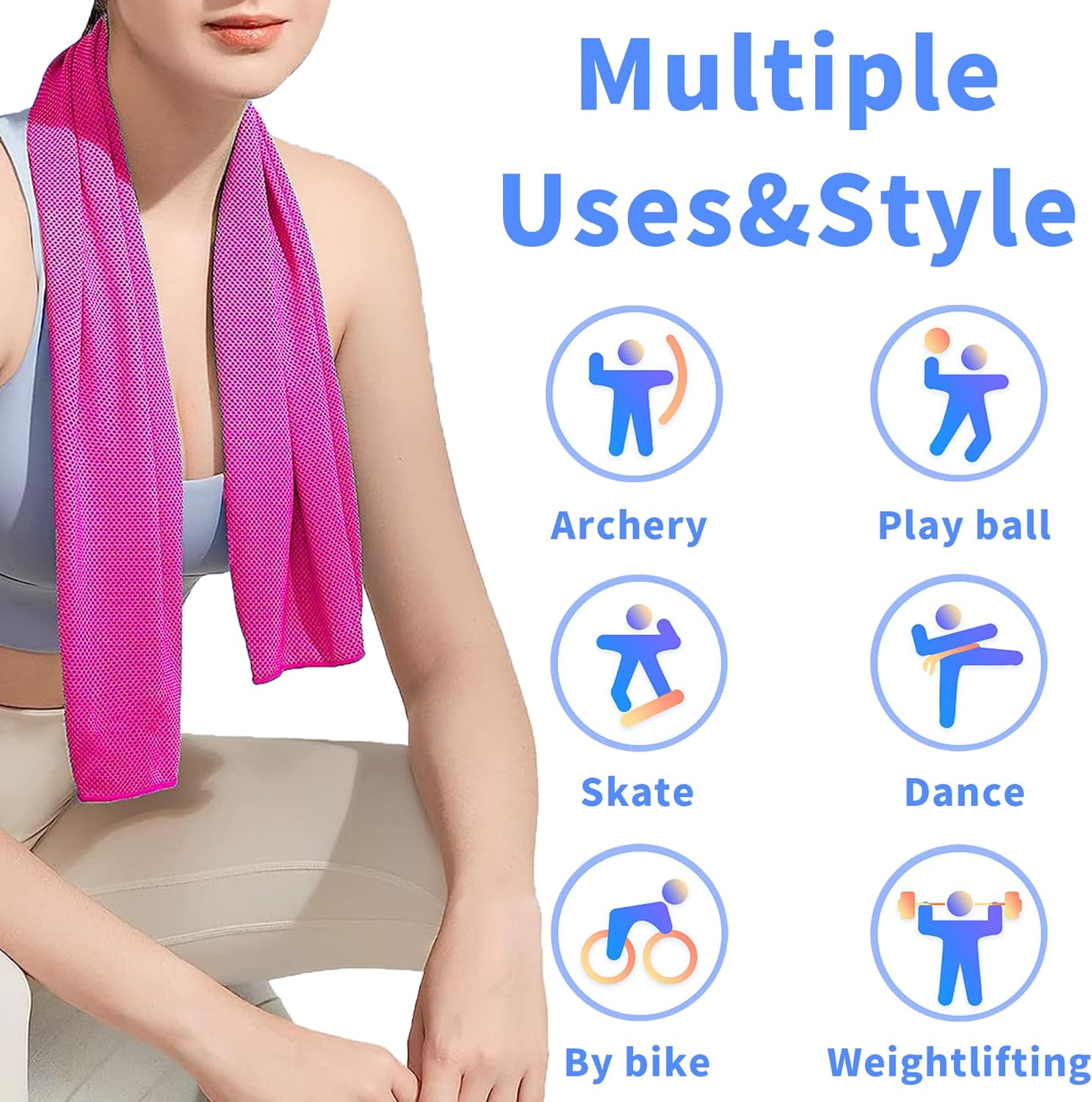 - MULTIPURPOSE SPORTS TOWEL: This cooling towel is perfect for sports enthusiasts who enjoy golf, swimming, football, gym, and fitness. It can help relieve headaches and fever, prevent heatstroke, protect from sun damage, and keep you cool during hot summers, outdoor activities, or migraines. It's absorbent, dries quickly, and can be used as a sweat rag for various sports. Additionally, it's versatile and can be worn as a head cover, neck wrap or scarf.