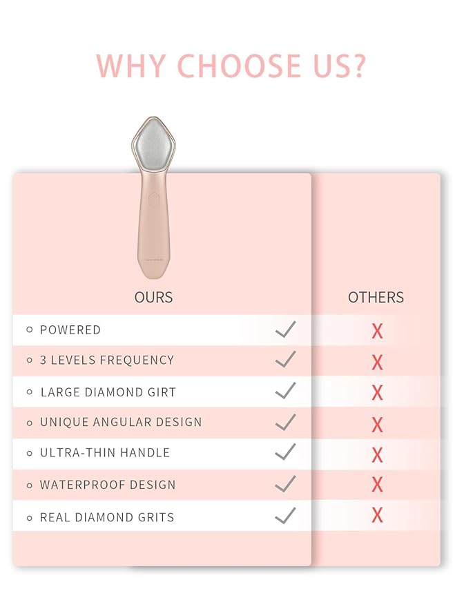 - ✔️[Large Diamond Head]What is it?This is a patented design waterproof at-home microdermabrasion tool with a large diamond head for gentle yet effective exfoliation.The facial machine is made of high grade material, which is durable, no irritation, non-invasive, and easy to use.We advise use gently on damp skin once every two weeks.